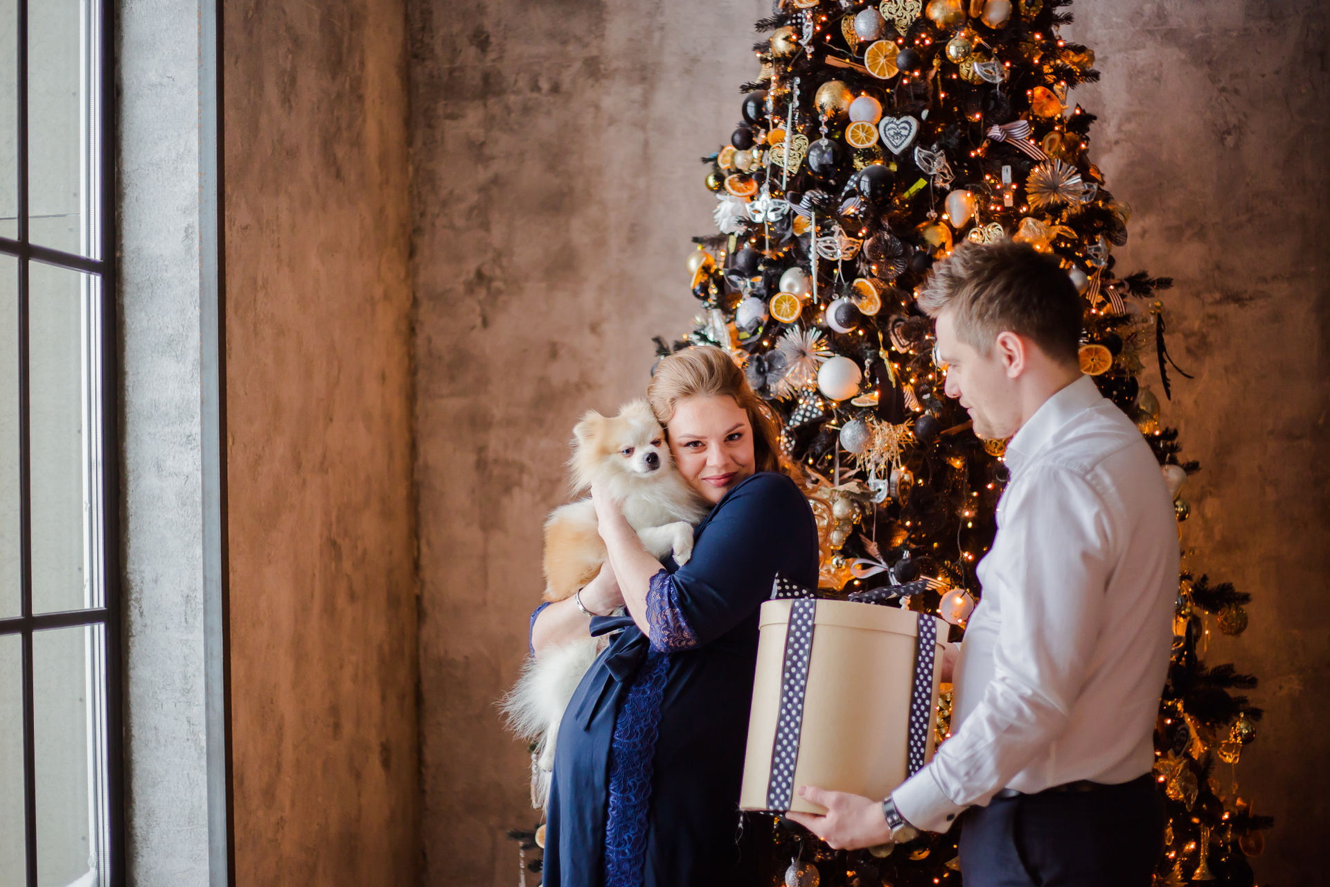 Новогоднее настроение, любимый человек, беременность, пушистый любимчик семьи и интерьерная студия.