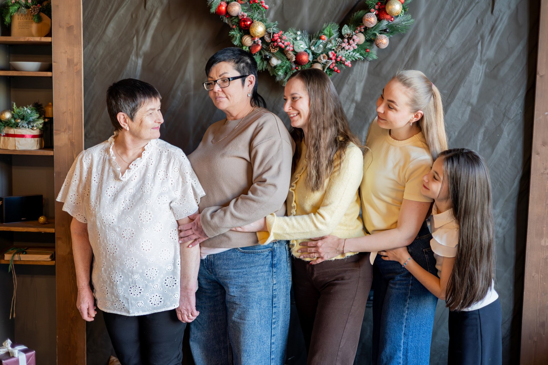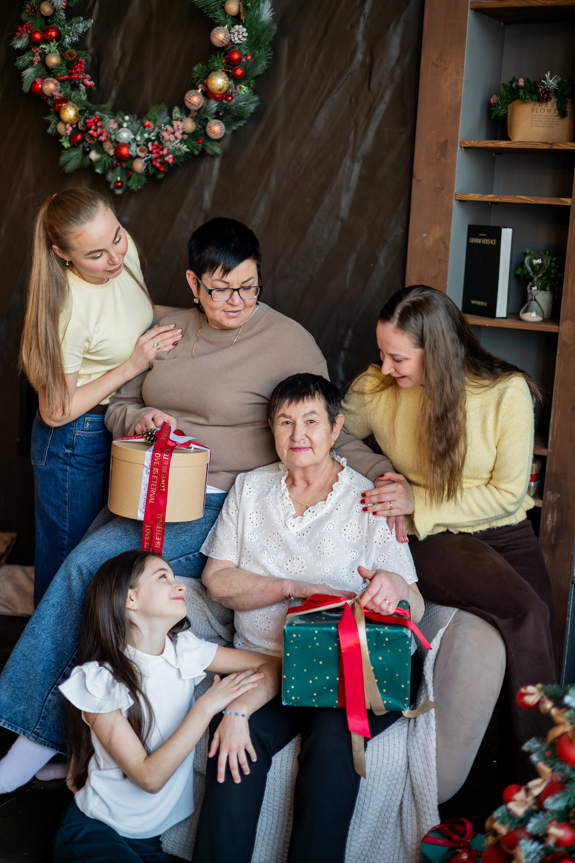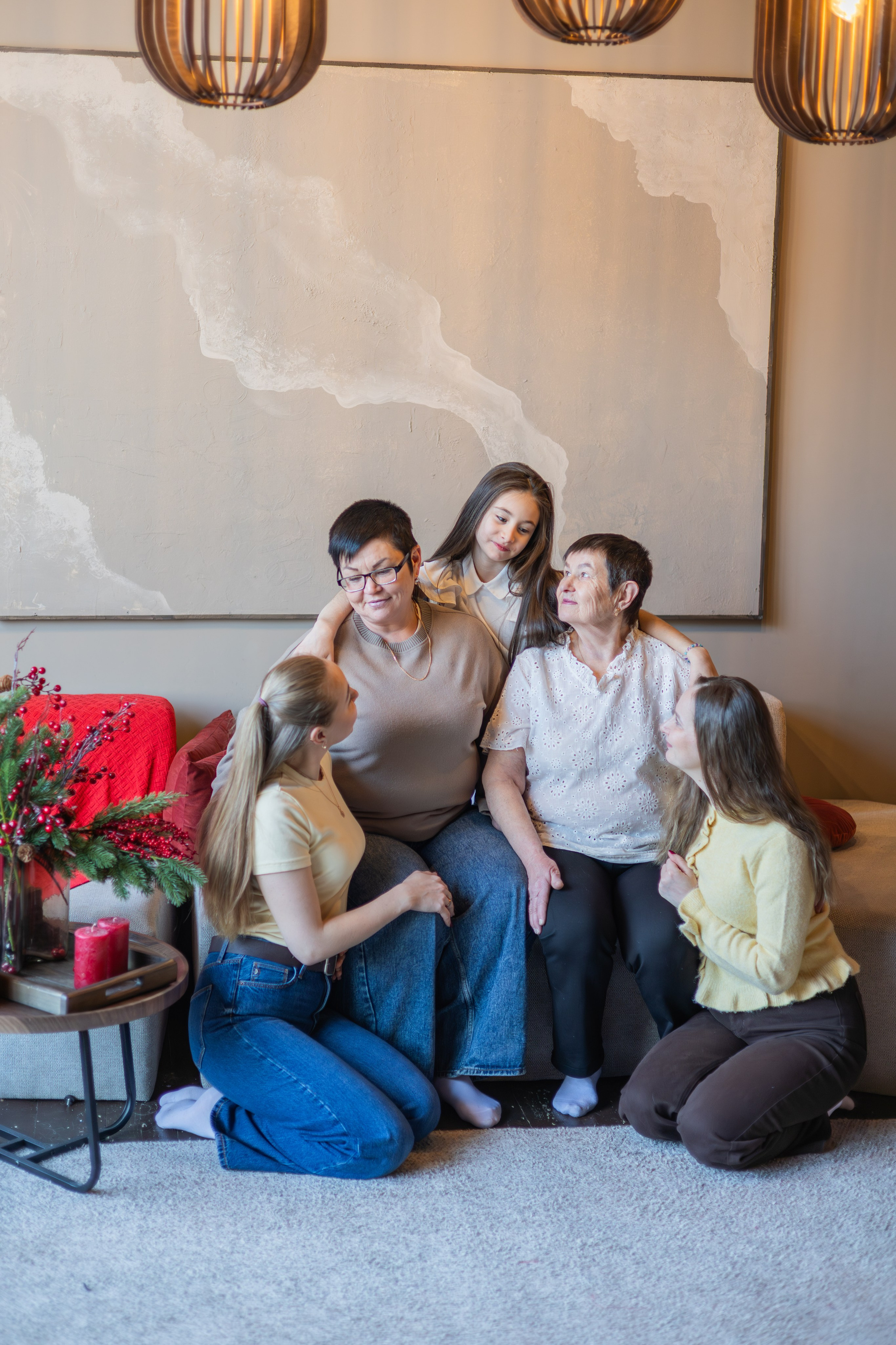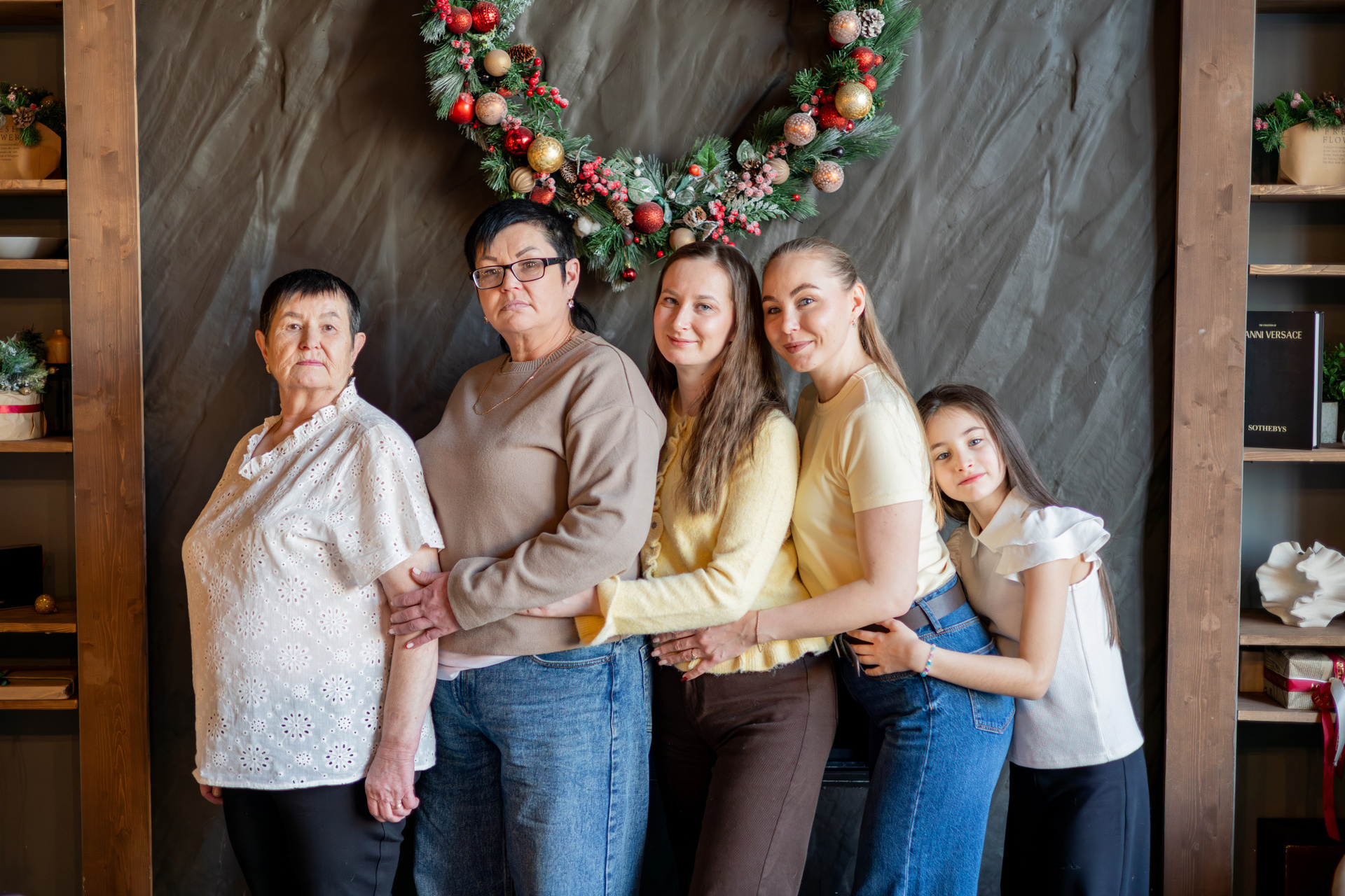 Фотосессия «Сила традиций: четыре поколения женщин» — это уникальное путешествие во времени, запечатлевшее связь между бабушкой, мамой, двумя сестрами и внучкой. Каждое поколение приносит свою историю, свои ценности и уникальный взгляд на жизнь, создавая удивительный калейдоскоп эмоций и воспоминаний.